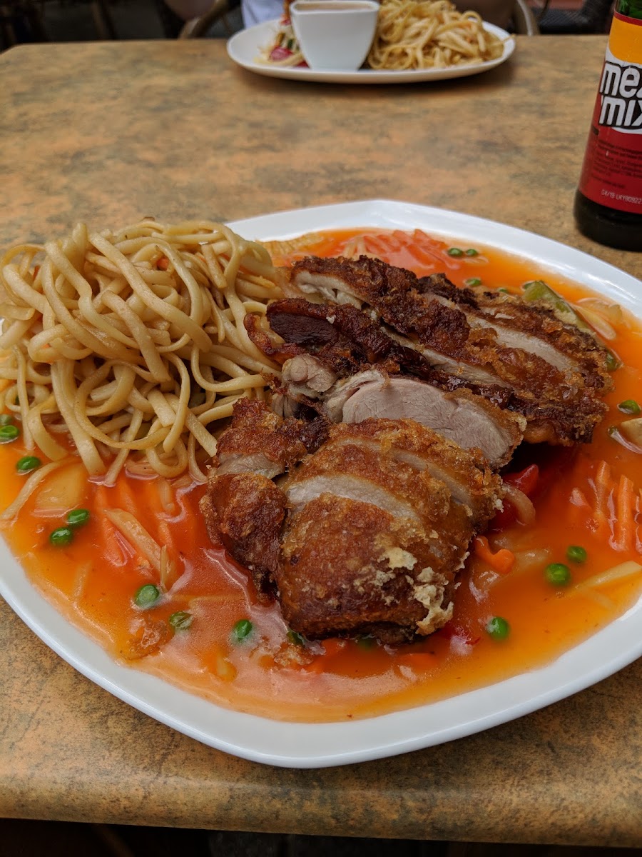 The food was okay, but not great. The veggies didn’t taste fresh, and the Bami Goreng was way too salty and greasy. Plus, the chicken had a strange smell.